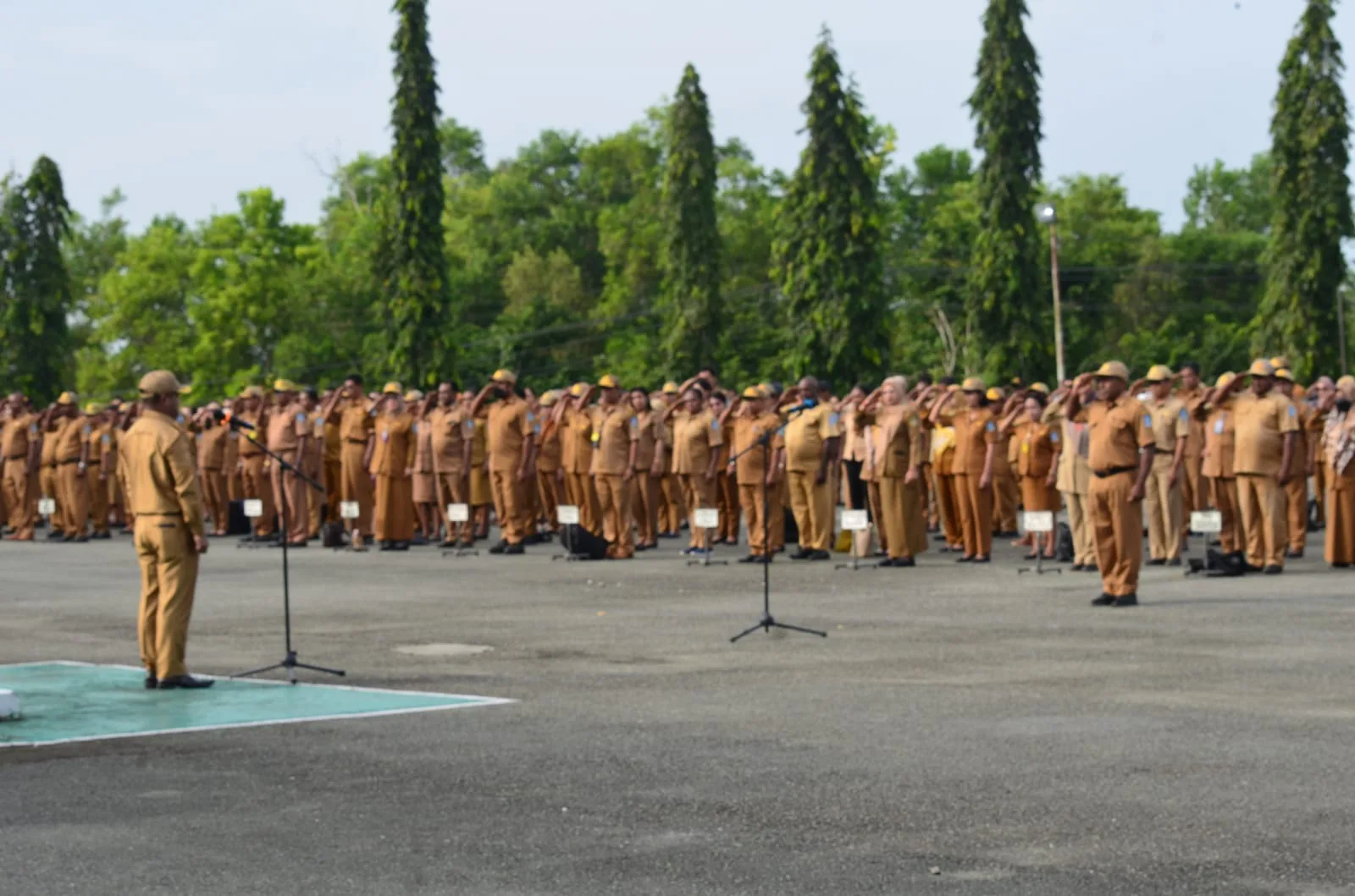 Apel tersebut di hadiri dan di ikuti oleh Bupati Jayapura, Sekda bersama para Asisten, Kepala Organisasi Perangkat Daerah, dan seluruh Aparatur Sipil Negara (ASN) dan tenaga kontra di Lingkup Pemerintah Kabupaten Jayapura.