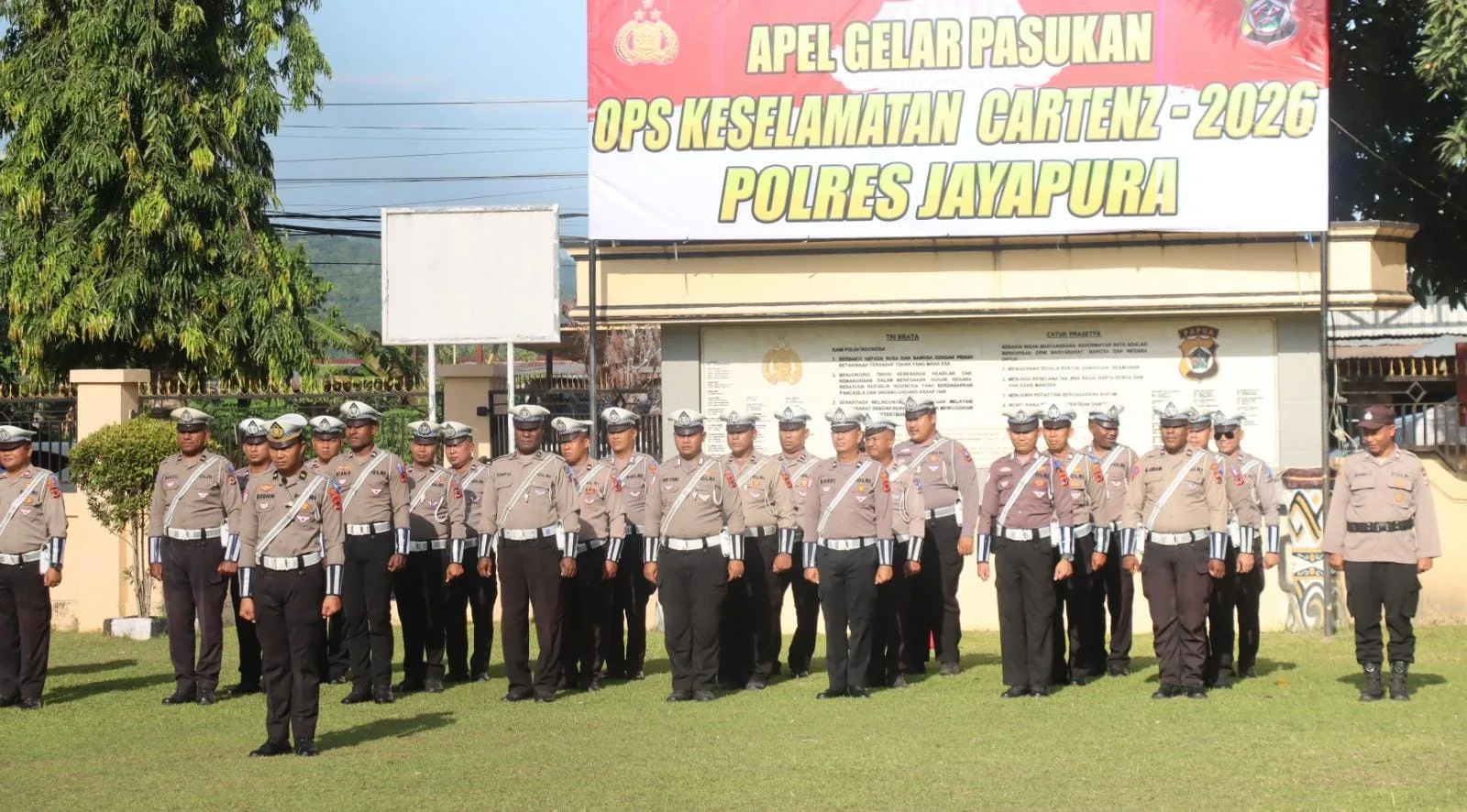 Berita Papua, Sentani — Polres Jayapura menggelar apel pasukan Operasi Keselamatan Cartenz 2026 di Lapangan Apel Polres Jayapura, Senin (2/2/2026) pagi. Sebanyak 100 personel disiapkan untuk menekan angka kecelakaan dan pelanggaran lalu lintas yang terus meningkat, terutama menjelang Hari Raya Idul Fitri 1447 Hijriah.