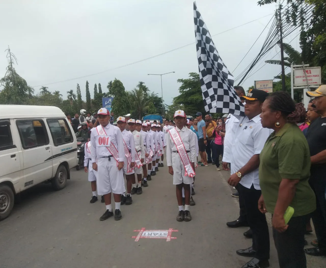 Wakil Bupati Jayapura yang mendampingi Bupati di garis start menyampaikan bahwa lomba gerak jalan ini diikuti oleh sekitar 1.700 siswa.