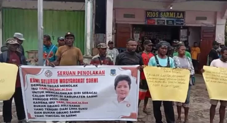 Berita Papua, Sarmi — Puluhan massa yang tergabung dalam Koalisi Masyarakat Sarmi Bersatu melakukan aksi demo damai menolak Ketua DPD Partai Gerindra Papua, Yanni untuk maju dalam Pemilihan Bupati (Pilbup) kabupaten Sarmi periode 2024-2029.