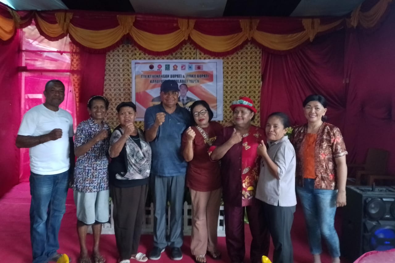 Di tempat yang sama, Ketua Tim Relawan Kasih “BRO” Mama Agustinus Raweyai menanggapi kehadiran bakal calon bupati Benyamin Arisoy dan bakal calon wakil bupati Roi Palunga bahwa pihaknya siap bersama tim yang hadir solid untuk memenangkan pasangan calon bupati ini di kampung Barawaikap dan Banawa.