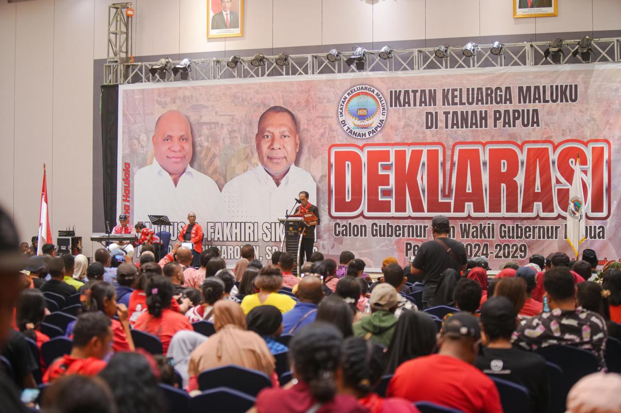 “Dengan ini, kami Ikatan Keluarga Maluku di tanah Papua secara khusus di Provinsi Papua memberikan dukungan kepada bapak Matius Fakhiri dan Aryoko Rumaropen sebagai calon gubernur dan wakil gubernur provinsi Papua pada pemilihan kepala daerah serentak 27 November 2024. Demikian pernyataan ini kami buat untuk dilaksanakan dan di pertanggung jawabkan,” tegasnya.