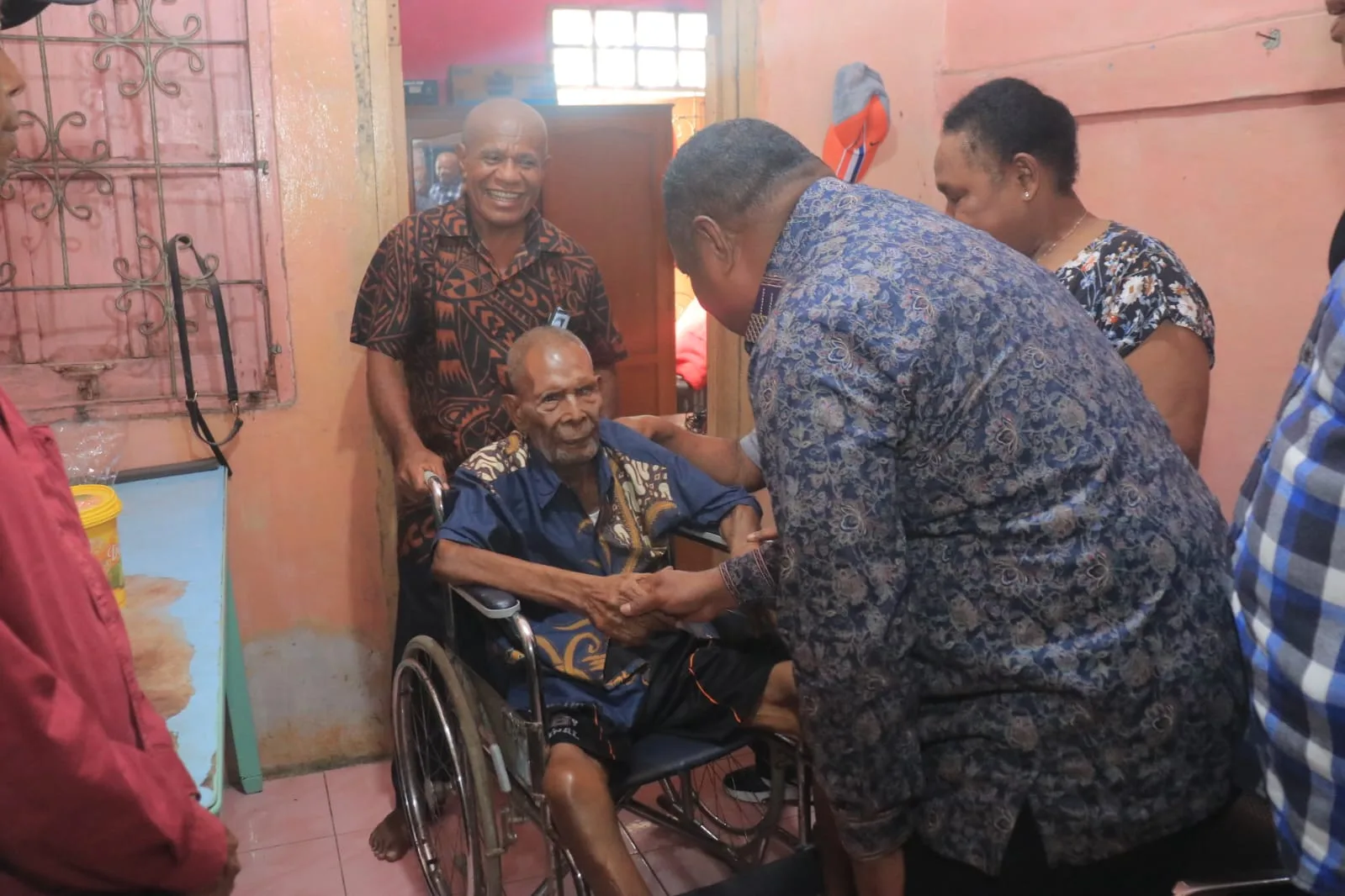 BMD, saapaannya, disambut hangat Ondoafi Besar Tobati Enggros bersama keluarga di kediamannnya.