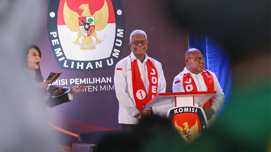 Berita Papua, Timika — Pasangan Calon (Paslon) Bupati dan Wakil Bupati Mimika nomor urut 1, Johannes Rettob – Emanuel Kemong (JOEL), menegaskan 3 janji utama untuk memimpin Kabupaten Mimika dalam debat kandidat perdana yang digelar Komisi Pemilihan Umum (KPU) di GOR Futsal, Jalan Poros SP II-SP V, Selasa (23/10/24).