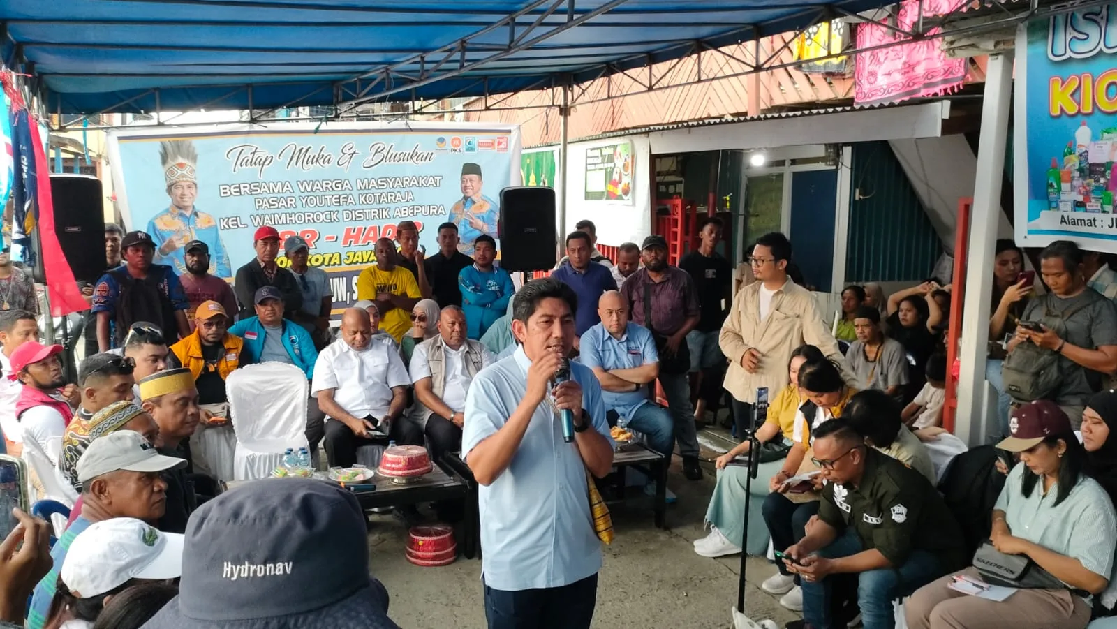 Penegasan itu terus dipaparkan Paslon Wali Kota Jayapura nomor urut 2 Jhony Banua Rouw – H M Darwis Massi (JBR-Hadir) bersama Paslon Gubernur Papua nomor urut 2 saat melakukan tatap muka lagi bersama warga belakang Pasar Youtefa, Abepura, Rabu, (9/10/2024)
