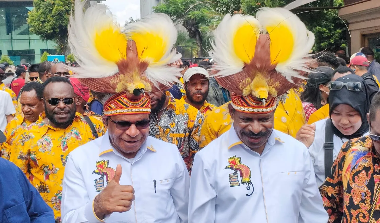 Pasca putusan MK, Elvis Tabuni yang didampingi wakilnya, Naftali Akawal, mengungkapkan rasa syukur atas keputusan tersebut.