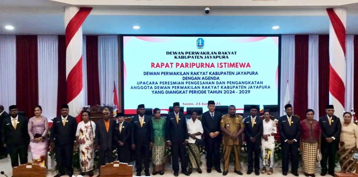 “Berdasarkan Surat Keputusan Gubernur Papua Nomor 100.3.3.1/KEP.173/2025 tanggal 2 Juni 2025, delapan anggota DPR Kabupaten Jayapura telah diresmikan,” ujarnya.