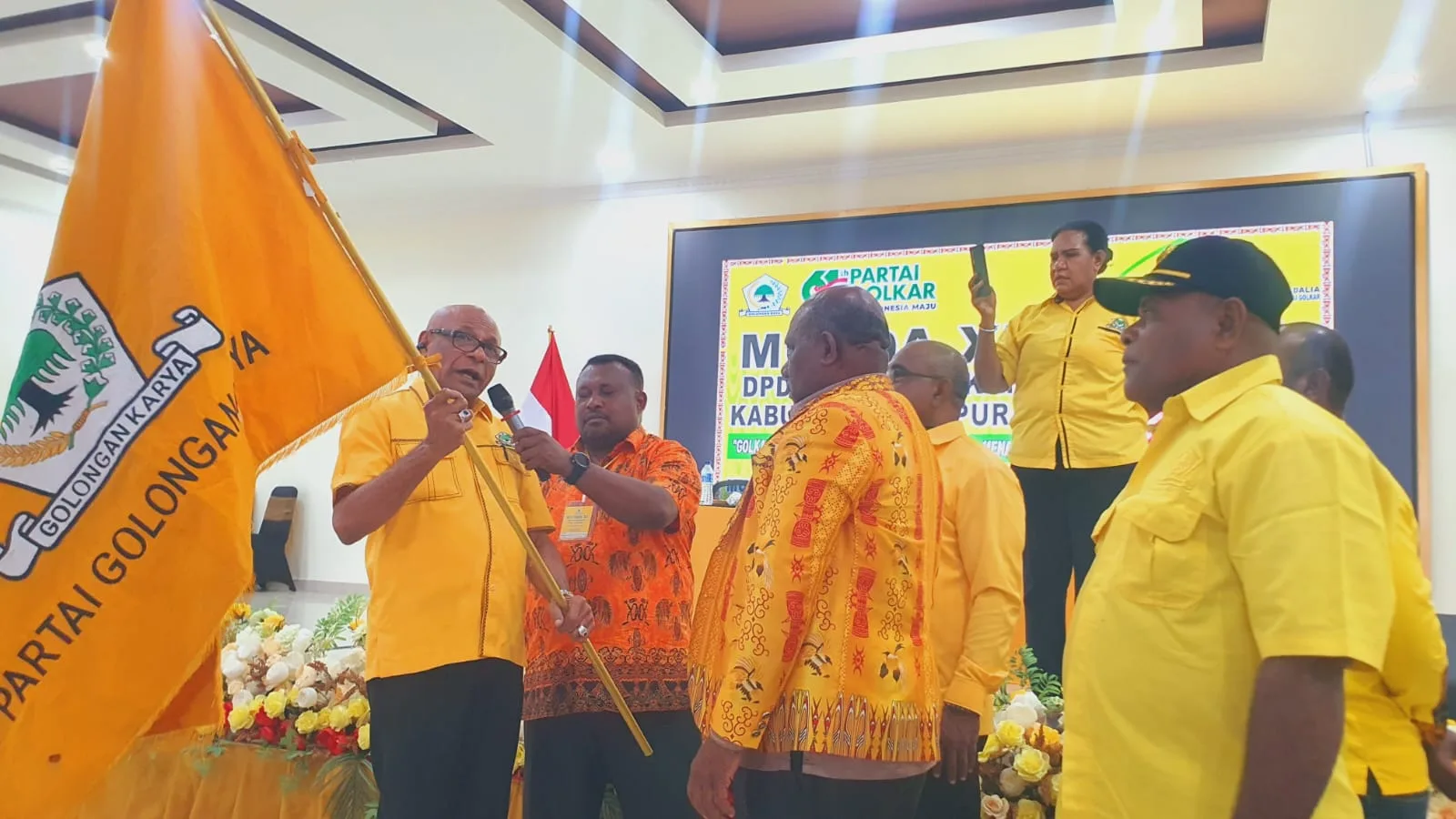 Pengukuhan secara simbolis dilakukan melalui penyerahan bendera pataka Partai Golkar oleh Max Richard Krey, yang menjabat sebagai Pimpinan Sidang Tetap Musda sekaligus Sekretaris DPD Partai Golkar Papua. Seremoni ini menandai dimulainya era kepemimpinan baru di tubuh Golkar Kabupaten Jayapura.