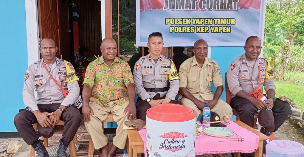 BeritaPapua.co, Serui — Kepolisian sektor Yapen Timur di pimpin langsung oleh Kapolsek IPDA Ibar Salurapa di dampingi anggotanya di sela-sela kegiatan jumat curhat bersama masyarakat Kampung Sere-sere mengungkapkan, masyarakat sangat respon positif kegiatan jumat curhat dengan tetap mendukung pihak keamanan guna menjaga situasi keamanan.