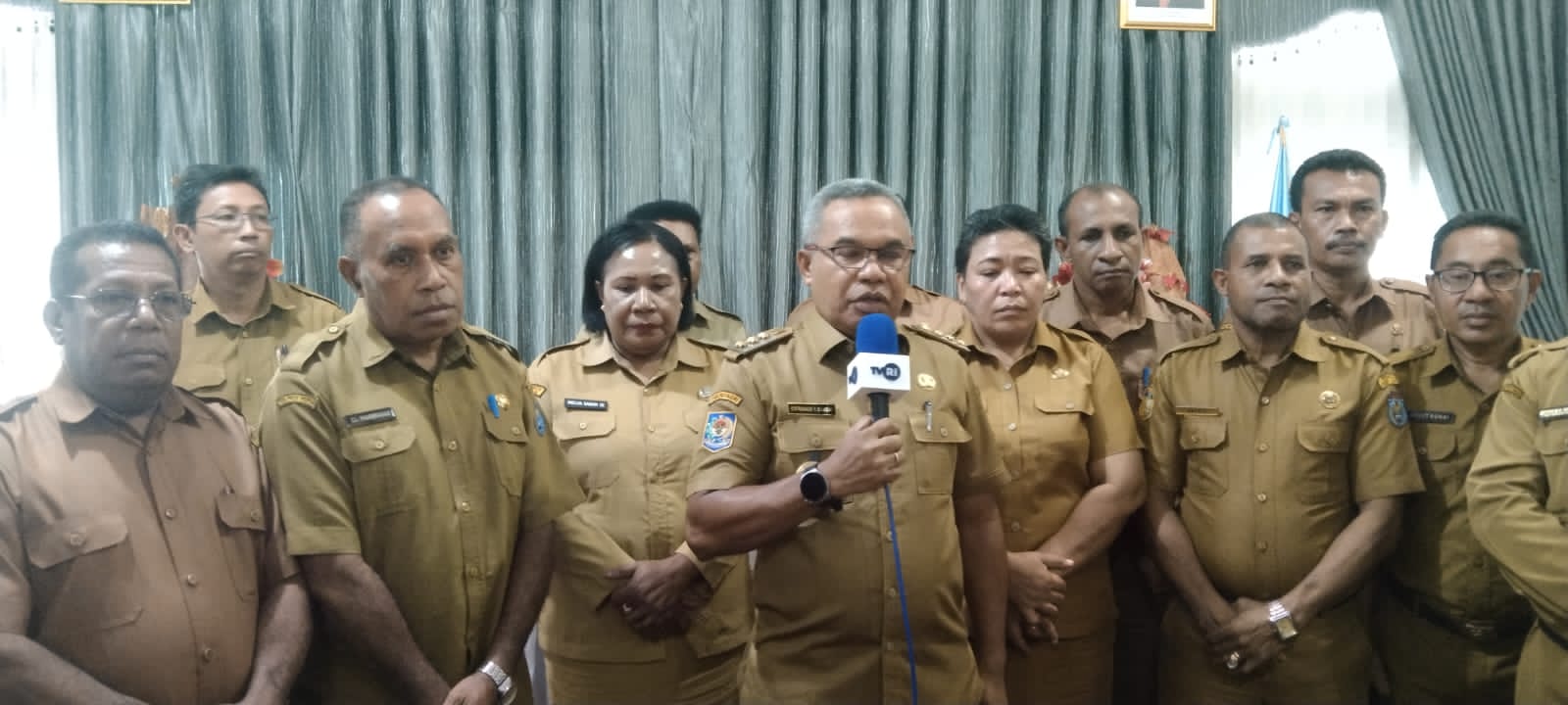 Penjabat Bupati, Cyfrianus Yustus Mambay mengemukakan rapat melalui vidcon kali ini merupakan tindak lanjut dari Rakornas(red-Rapat Koordinasi Nasional) Kepala-kepala daerah dan Forkopimda seluruh Indonesia dengan Presiden yang berlangsung baru-baru ini di Jakarta.