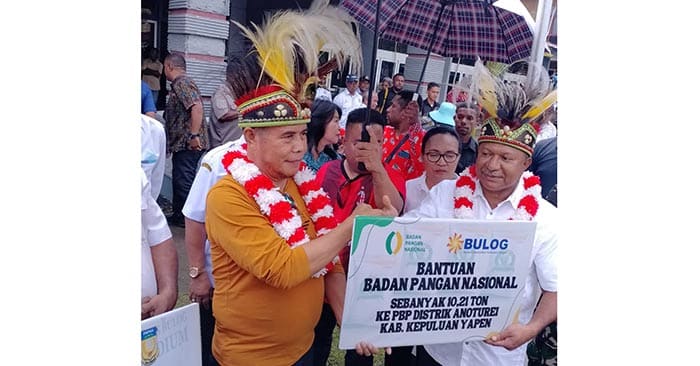 Pada kesempatan itu Pejabat Gubernur Papua Juga menyarahkan secara simbolis bantuan badan pangan nasional kepada perwakilan Masyarakat.