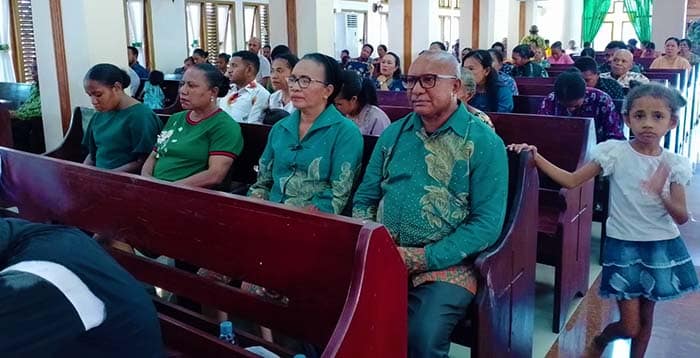 BeritaPapua.co, Serui — Penjabat Bupati Kabupten Kepulauan Yapen Welliam R Manderi didampingi istri Ny. Yustina Lewerissa Manderi dan Asisten l Setda, Edi N Mudumi, laksanakan Ibadah Minggu pagi bersama Umat Kristen di Jemaat GKI Efata Tarau, Minggu (5/11/2023).