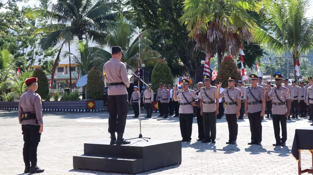 Berita Papua, Serui — Bertempat di Lapangan Apel Mapolres, Kapolres Kepulauan Yapen Kompol Ardyan Ukie Hercahyo memimpin upacara pengukuhan Jabatan Wakapolres dan serah terima jabatan 2 Kapolsek di Polres Kepulauan Yapen, Jumat (16/8/24) pagi.