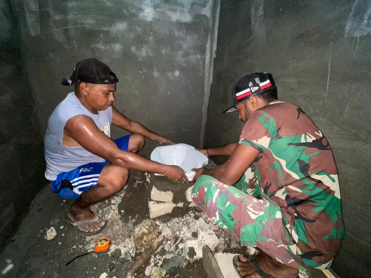 Berita Papua, Serui — Memasuki hari ke-27 pelaksanaan pembangunan rumah bagi warga melalui Program TMMD Reguler ke-121 Tahun Anggaran 2024 Kodim 1709 Yawa di Kampung Perea, Distrik Nusawani, Kabupaten Kepulauan Yapen, kini telah hampir rampung dan memasuki tahap akhir yaitu pembangunan Kamar MCK (Mandi, Cuci, Kakus), Senin (19/8/24).