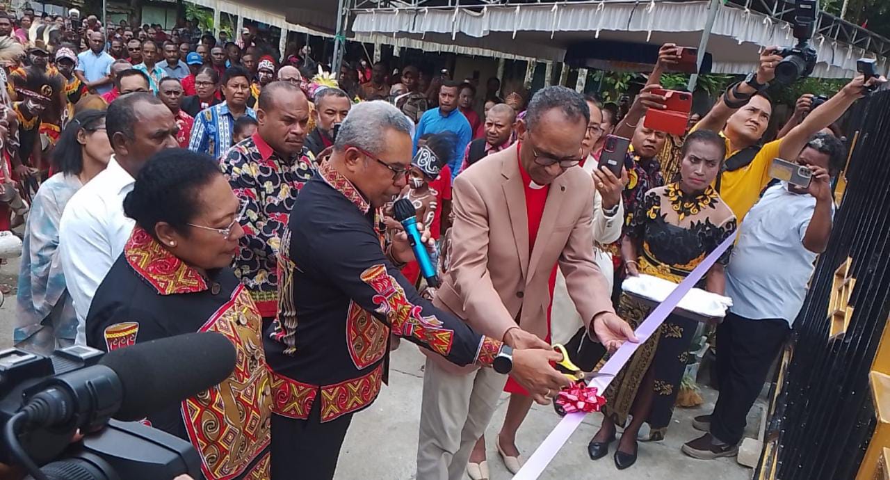 Bangunan baru rumah Pastori yang dibangun sejak tahun 2013 tersebut diresmikan oleh PJ Bupati Kabupaten Kepulauan Yapen Cyfrianus Yustus Mambay didampingi oleh Wakil Ketua ll Badan Pekerja Sinode Gereja Kristen Injil di Tanah Papua Pdt Gustaf M Wutoy, Sabtu (19/8/2023).