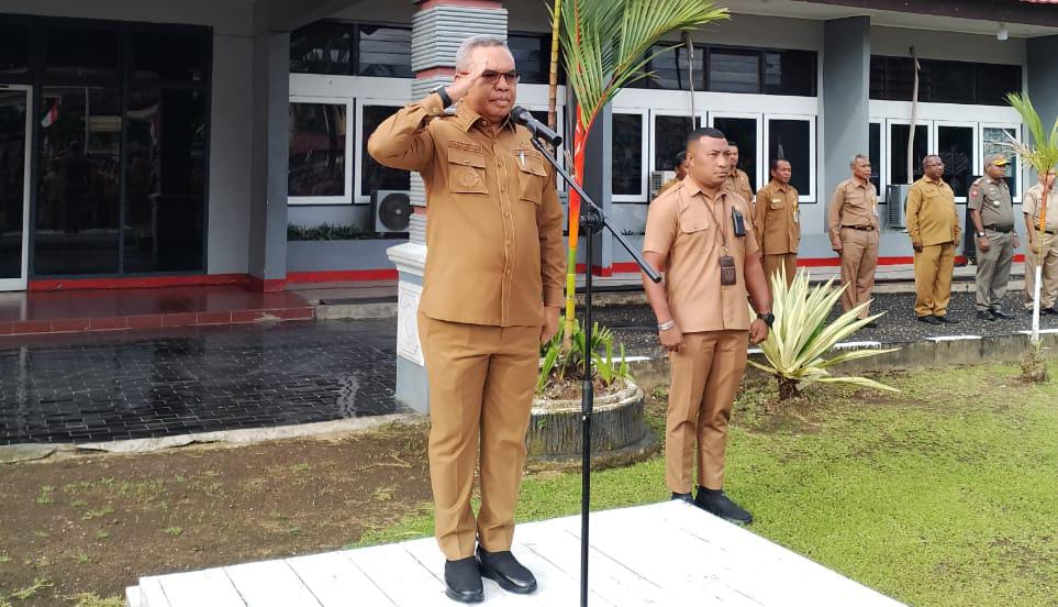 BeritaPapua.co, Serui — Apel gabungan pagi dilingkungan pemerintah daerah Kabupaten Kepulauan Yapen pada Senin 31 Juli 2023 dipimpin langsung oleh Penjabat Bupati Cyfrianus Yustus Mambay.