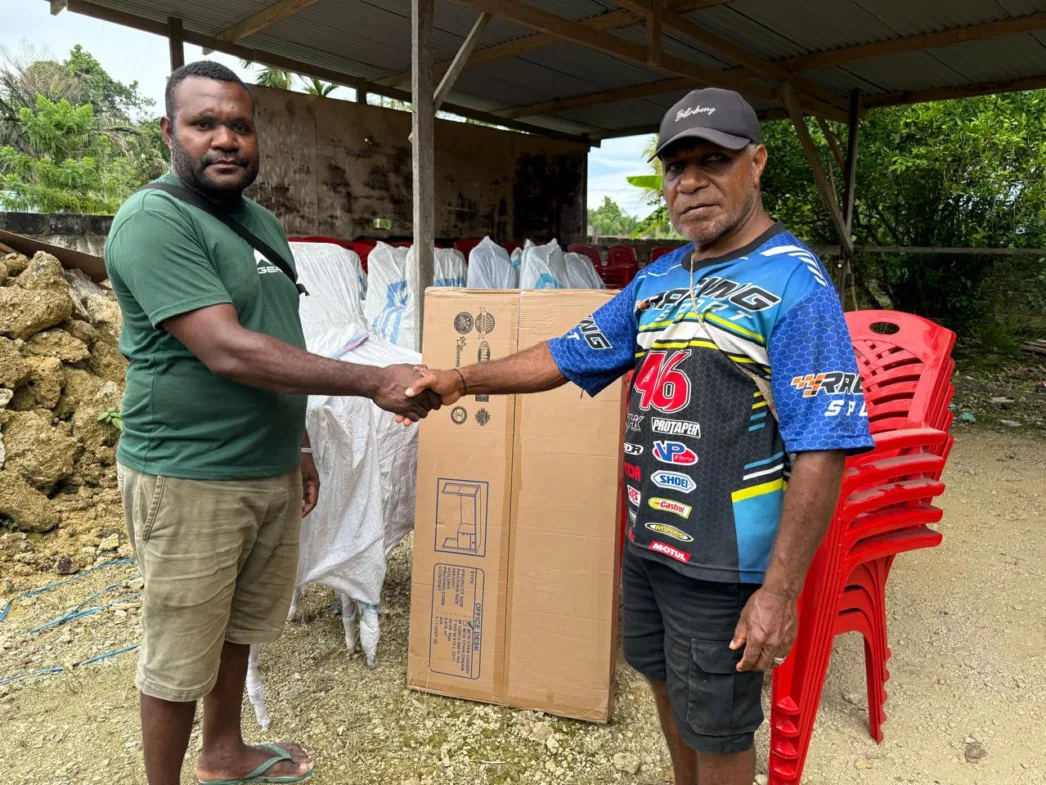 Sementara itu, Nimrot Serigenam Yaas, Kepala Kampung Aurimi, menyebut bantuan ini sebagai inventaris pertama yang diterima balai kampung mereka.
