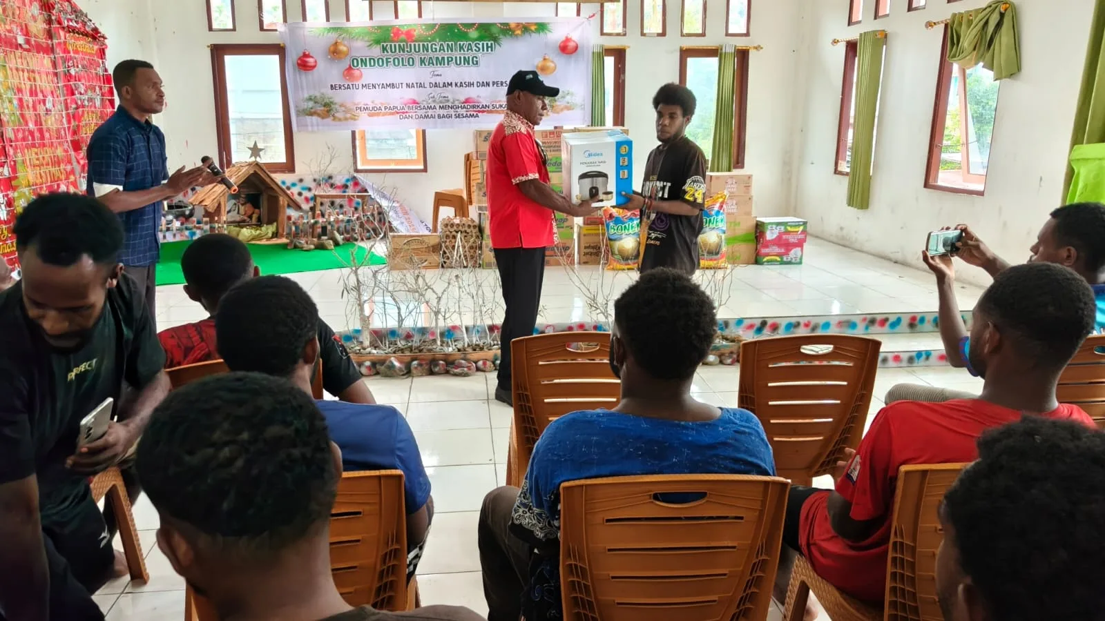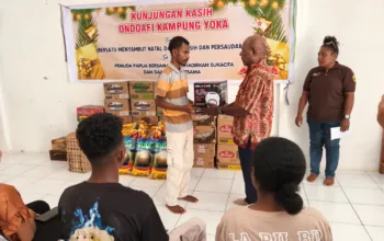 Berita Papua, Jayapura — Ondofolo Kampung Yoka, David Mebri, melakukan kunjungan kasih dan menyalurkan bantuan sembako Natal kepada mahasiswa di Asrama Mahasiswa Kabupaten Deiyai, Papua Tengah, yang berlokasi di Distrik Abepura, Kota Jayapura, Senin (15/12/2025).