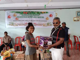 “Dalam suasana Natal tahun ini, kami dari tokoh adat, tokoh agama, dan tokoh pemuda yang ada di Kampung Waena memberikan sedikit bantuan kepada adik-adik di asrama sebagai bentuk kepedulian dan kasih Natal,” kata Ohee.