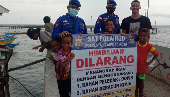 Giat pemberian himbauan dipimpin langsung Aipda Hardi bersama dua staf sat polair polresta jayapura kota yang diakhiri dengan pemasangan spanduk himbauan larangan penggunaan bom ikan dan bahan beracun kimia untuk menangkap ikan.(*)