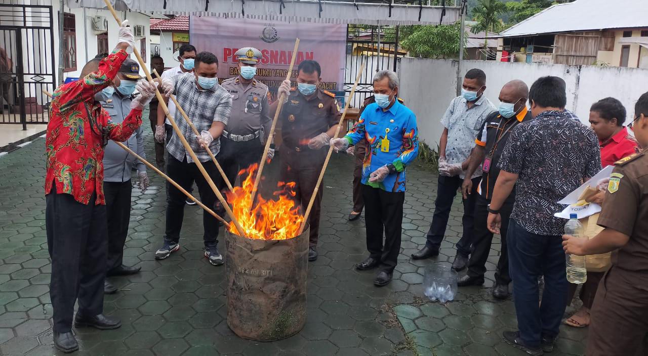 Turut hadir menyaksikan pemusnahan Barang Bukti Ikract ini, Perwakilan dari Polres Kepulauan Yapen dan Kabupaten Waropen, Pengadilan Negari Serui, Kalapas Kelas ll B Serui dan unsur perwakilan Masyarakat.