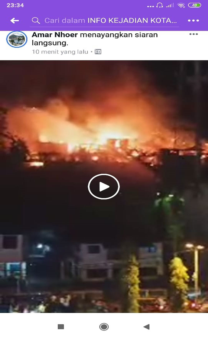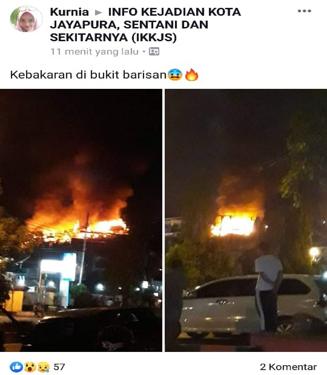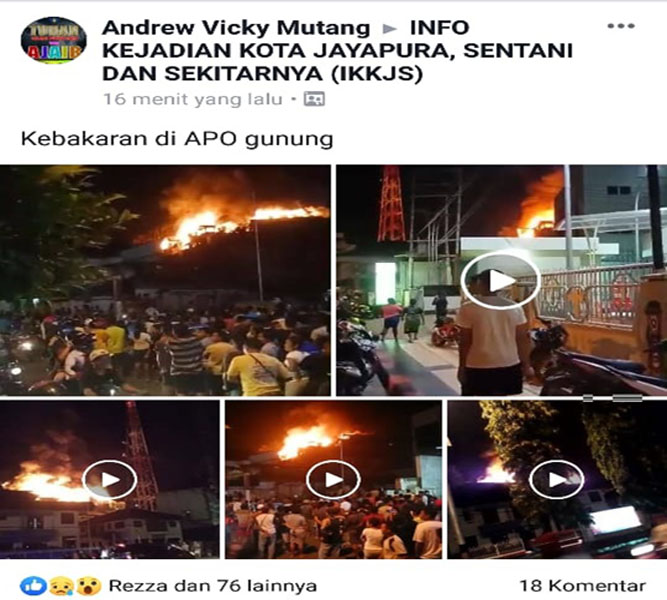 Lewat akun-akun media sosial facebook banyak yang memposting kebakaran dan melakukan siaran langsung kejadian tersebut.