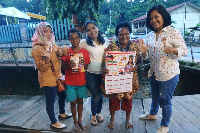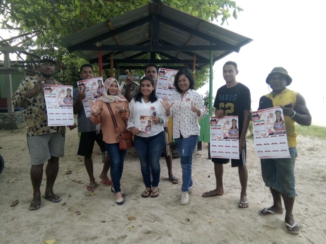 Setiap lokasi yang dikunjungi tidak lupa Shita Idar membagikan kalender, kartu nama dan stiker.