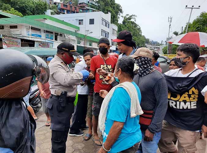 Kompol Heru menambahkan bahwa tujuan pembagian masker gratis ini adalah untuk mewajibkan masyarakat Kota Jayapura agar selalu memakai masker dalam melakukan aktivitas.