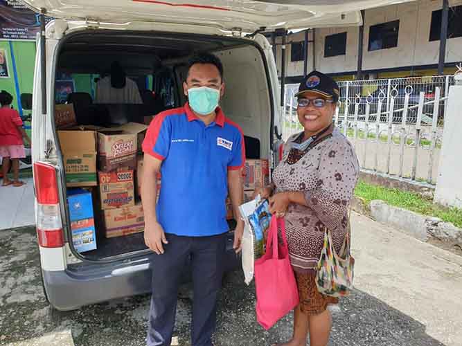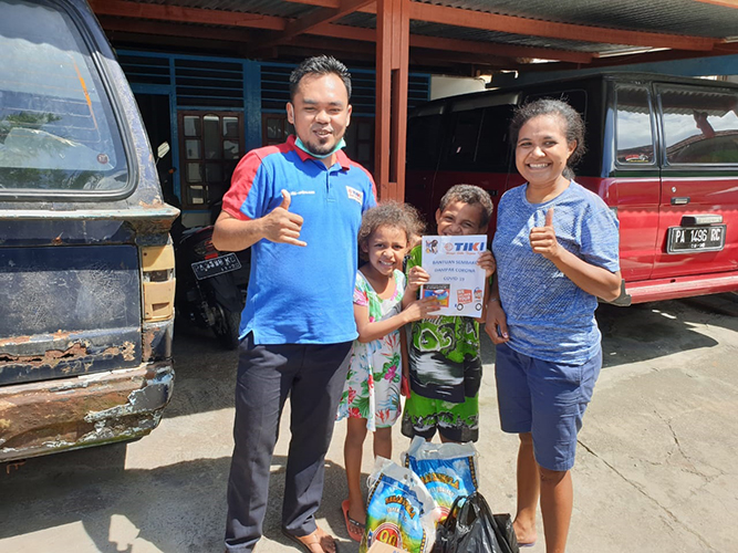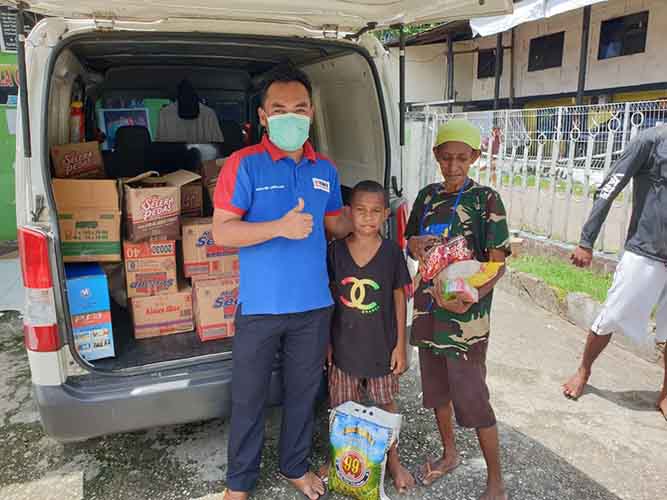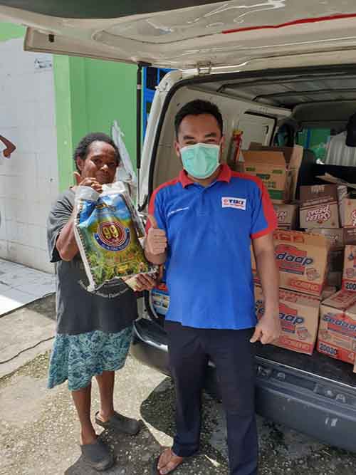 Pimpinan TIKI Biak, Ahmad Zulhaji membagikan sembako ini mulai dari pinggiran jalan Kota Jayapura hingga sampai ke distrik Abepura, tak lupa juga TIKI mendatangi salah satu panti asuhan pelangi.