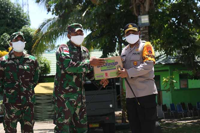 serta memberikan bantuan bama kepada Pos Satgas Pamtas RI-PNG dan Polsubsektor Di Skouw, Kamis (30/4/20) siang.