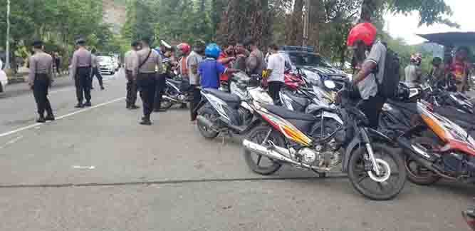 Jayapura, Beritapapua.co — Dalam rangka cipta kondisi terkait situasi Kamtibmas dan tingginya angka kasus pencurian kendaraan bermotor, Kepolisian Resor Polresta Jayapura Kota menggelar razia di Batas Kota Waena Distrik Heram, Senin (24/8/20).