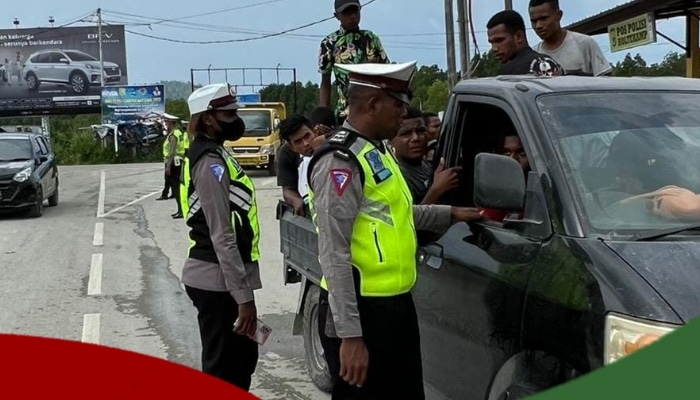 Berita Papua.co, Jayapura — Gelar Razia di Pertigaan Holtekamp Distrik Muara Tami, Sat Lantas Polresta Jayapura Kota melalui Ops Patuh Cartenz hari ini jaring 7 pelanggar.