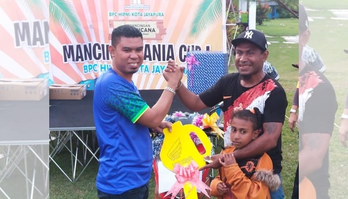Hadiah tersebut langsung diserahkan oleh Ketua Umum BPC HIPMI Kota Jayapura H. Supriadi Laling disaksikan oleh pengurus dan pemilik Aji Kencana.