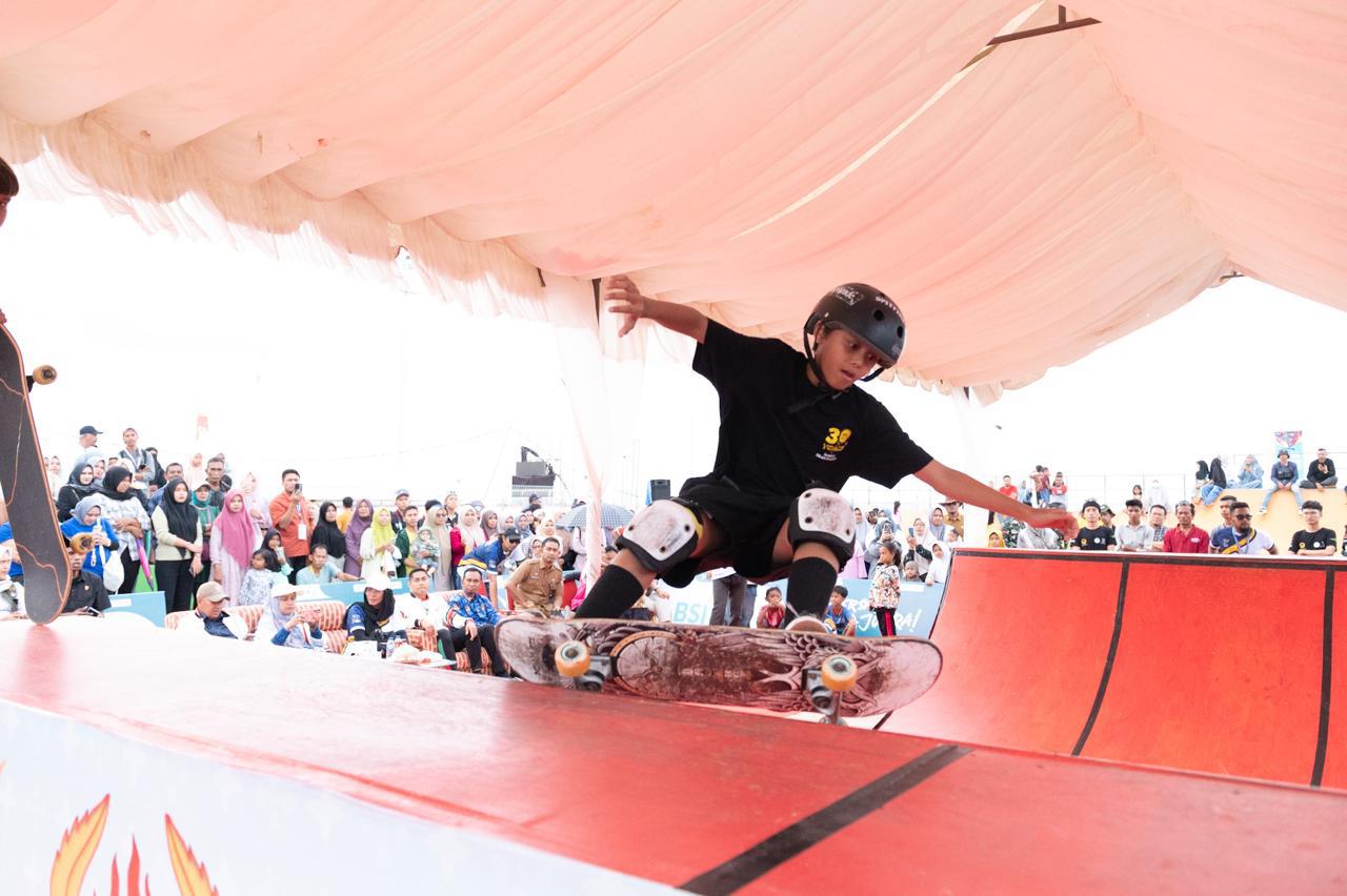 Penampilan Jagad yang penuh dengan skill terbaiknya, membuat suasana di venue Skateboard, yang berada di kabupaten Pidi, Provinsi Aceh itu berlangsung meriah.