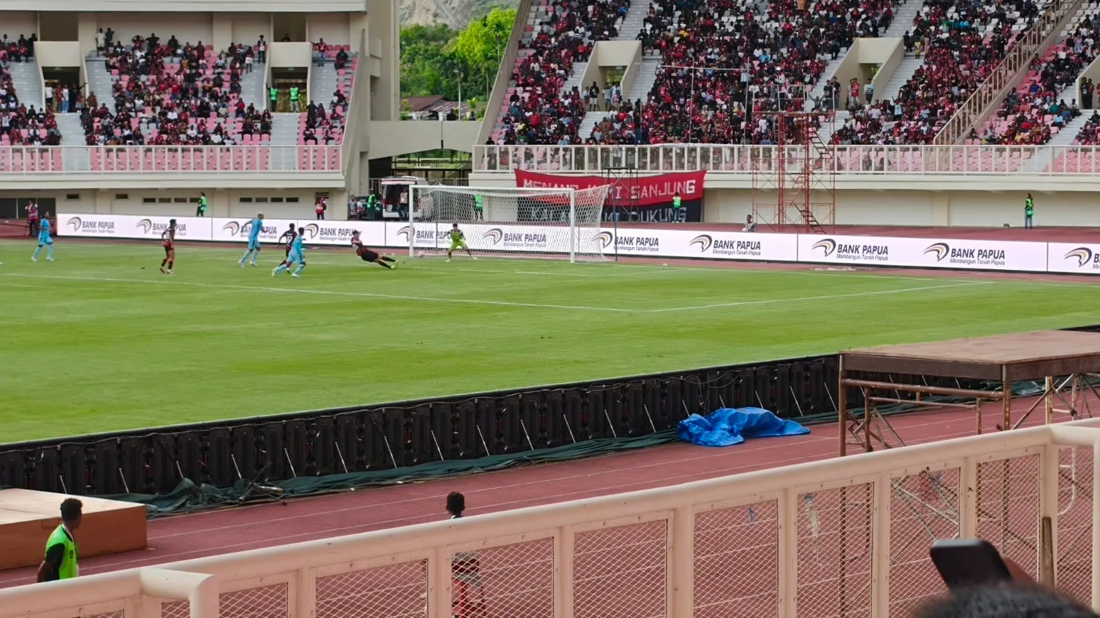 Pada menit ke-75, Ramai Melvin Rumakiek bernomor punggung 23 mencoba membangun serangan dari sayap kanan, namun pergerakan pemain Mutiara Hitam itu berhasil dipatahkan oleh barisan pertahanan Persela yang menghasilkan tendangan gawang.