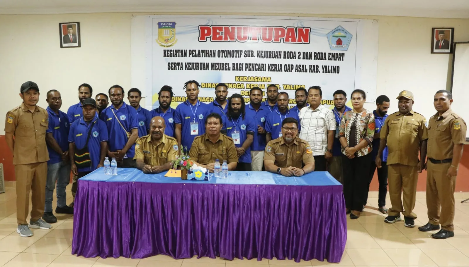 Berita Papua, Jayapura — Pemerintah Kabupaten Yalimo melalui Dinas Tenaga Kerja bekerjasama dengan Dinas Tenaga Kerja, Koperasi, dan Usaha Kecil Menengah provinsi Papua menggelar acara penutupan pelatihan kejuruan bagi 25 pemuda Yalimo di Satpel PVP Jayapura eks Balai Latihan Kerja (BLK), Selasa (22/10/2024).