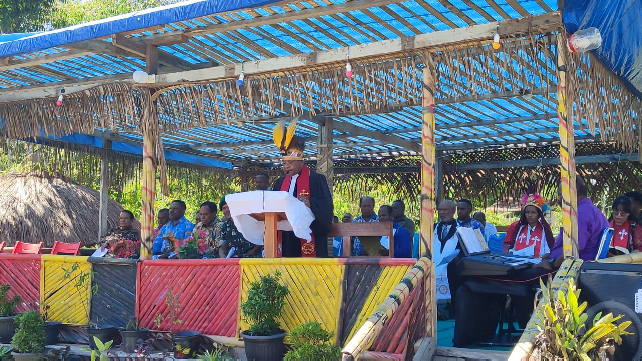 “GKI hadir di tanah Papua untuk melakukan penginjilan dari Sorong hingga Merauke, bahkan hingga Papua Nugini. Sebagai gereja tertua di Papua, kami berkomitmen menjalankan pelayanan secara sistematis dan terstruktur,” kata Ketua Klasis GKI Yalimo, Pendeta Yahya Walianggen, S.Th., saat membacakan sambutan Ketua Sinode.