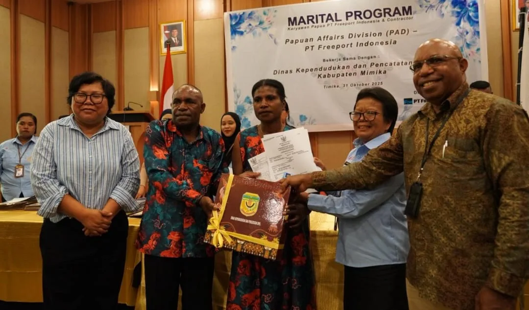 Berita Papua, Jayapura — PT Freeport Indonesia (PTFI) kembali menggelar program Nikah Catatan Sipil secara Massal bagi karyawan dan kontraktor Orang Asli Papua (OAP) sebagai upaya meningkatkan kesejahteraan dan memberikan perlindungan hukum bagi keluarga pekerja Papua.