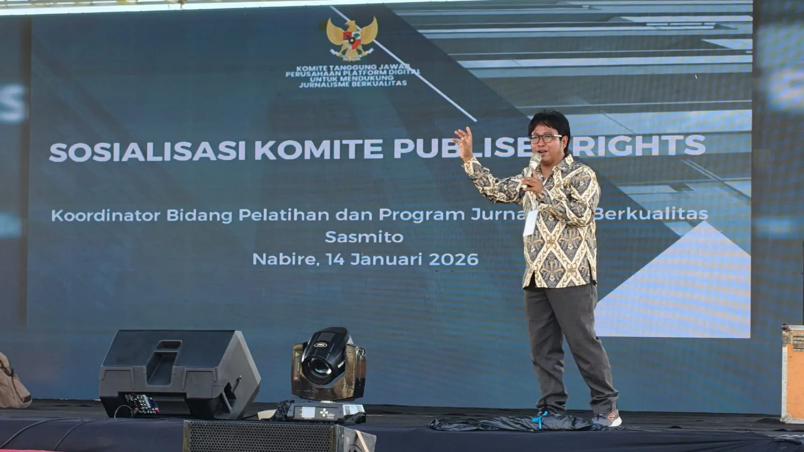 Hal ini disampaikan dalam workshop sesi II dengan topik, “Know Your Right, Protect Your Content: Sosialisasi Hak Penerbit untuk Media Papua” pada Festival Media Se-Tanah Papua di Kabupaten Nabire, Rabu (14/1/2026).