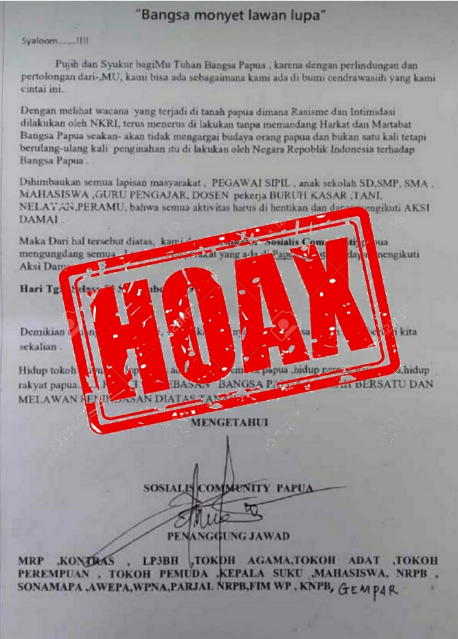 Menurut Ketua MRP bahwa berdasarkan pencatutan nama lembaga milik (Orang Asli Papua) OAP dalam selebaran yang dibagikan dengan menyertakan MRP tidak pernah mendapat persetujuan secara kelembagaan.