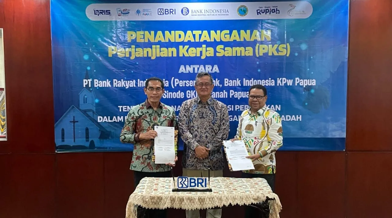 Berita Papua, Jayapura — PT Bank Rakyat Indonesia (Persero) Tbk Regional Office Jayapura menandatangani perjanjian kerjasama dengan Sinode Gereja Kristen Indonesia (GKI) di Tanah Papua untuk mengimplementasikan dan memperluas Quick Response Code Indonesian Standard (QRIS) di lingkungan rumah ibadah seluruh jemaat GKI di Tanah Papua, Rabu (5/6/2025).