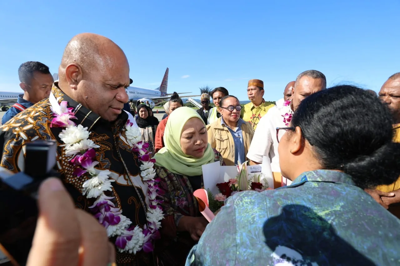 Berita Papua, Jayapura — Gubernur Papua Matius Fakhiri mendapat sambutan hangat dari ratusan warga dan jajaran Forum Komunikasi Pimpinan Daerah (Forkopimda) Papua saat tiba di Bandara Internasional Sentani, Jayapura, Kamis (16/10/2025) pagi.