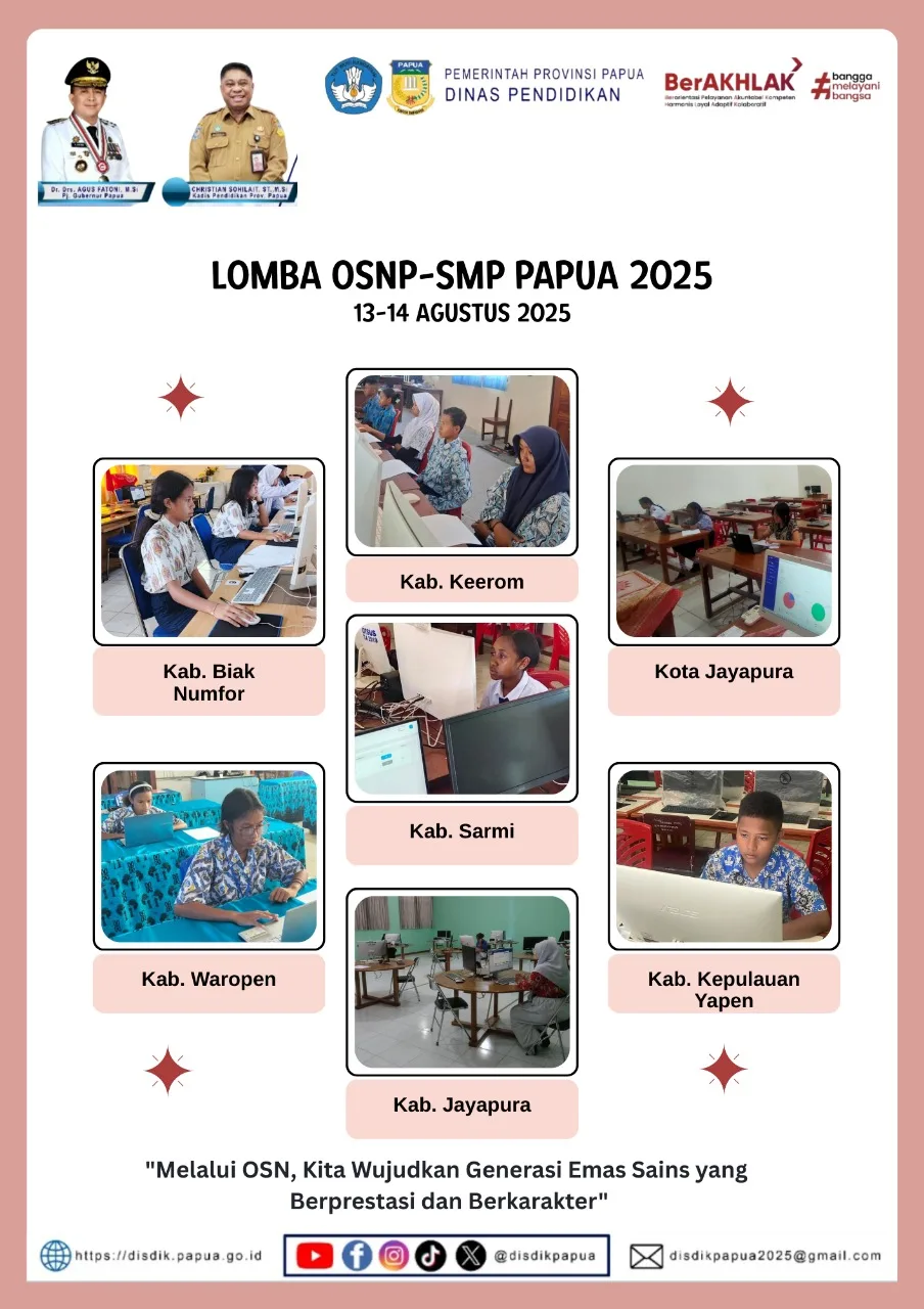 Berita Papua, Jayapura — Sebanyak 400 siswa terpilih dari berbagai jenjang pendidikan di Provinsi Papua mengikuti Olimpiade Sains Nasional (OSN) tingkat provinsi tahun 2025.